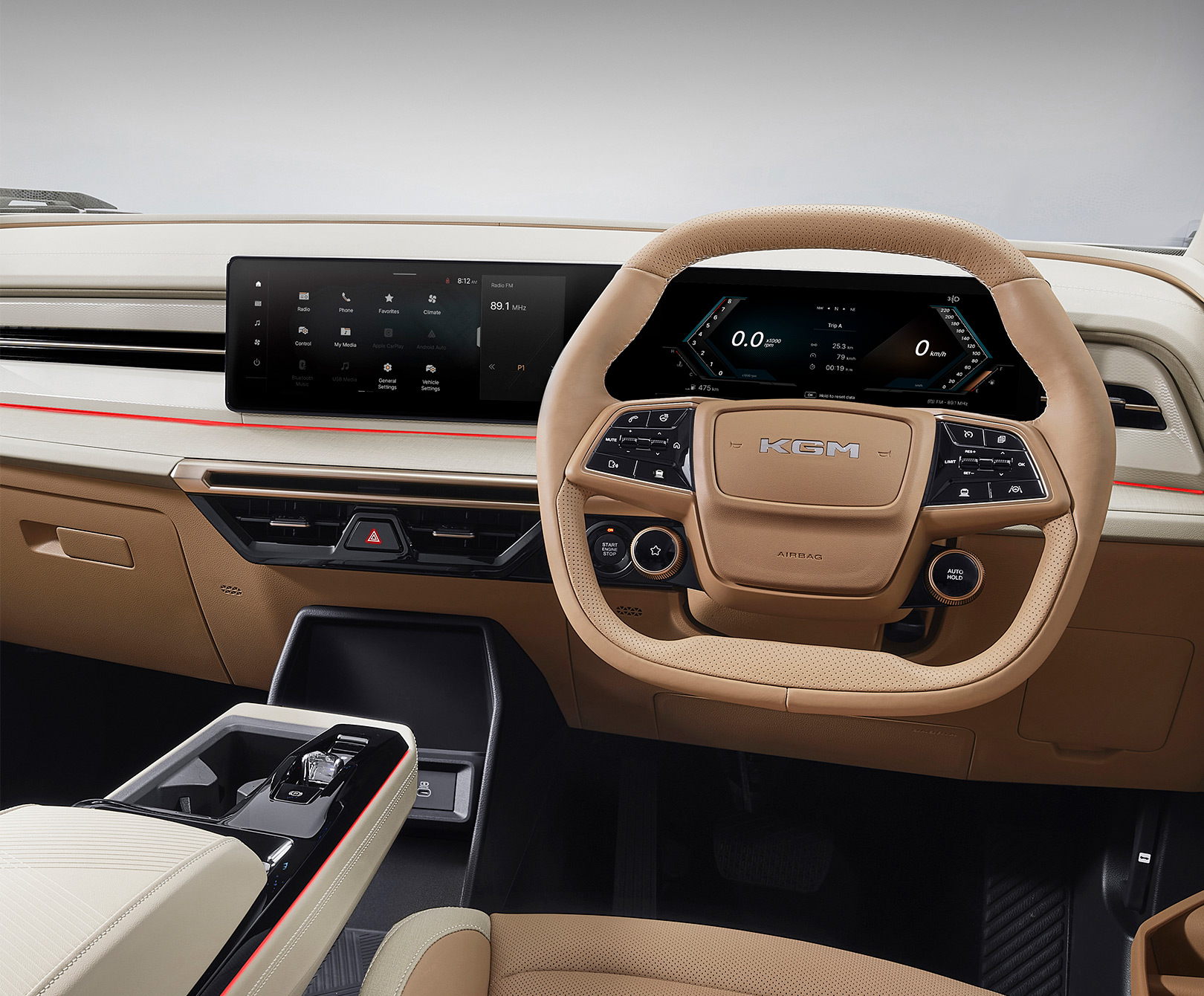 The cutting-edge infotainment system boasts a 12.3-inch panoramic display, powered by KGM’s advanced Athena 2.0 GUI platform. Designed for an intuitive and immersive experience, it seamlessly connects technology with your senses for ultimate driving enjoyment.