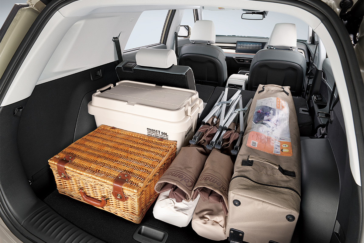 With best-in-class capacity ranging from 703 to 1,662 liters, our spacious load area is perfectly suited for a mid-size SUV. Discover additional convenience with a discrete and hidden storage space beneath the load floor, ensuring optimal space efficiency and security. Welcome to a new way of living with ample and versatile storage solutions.