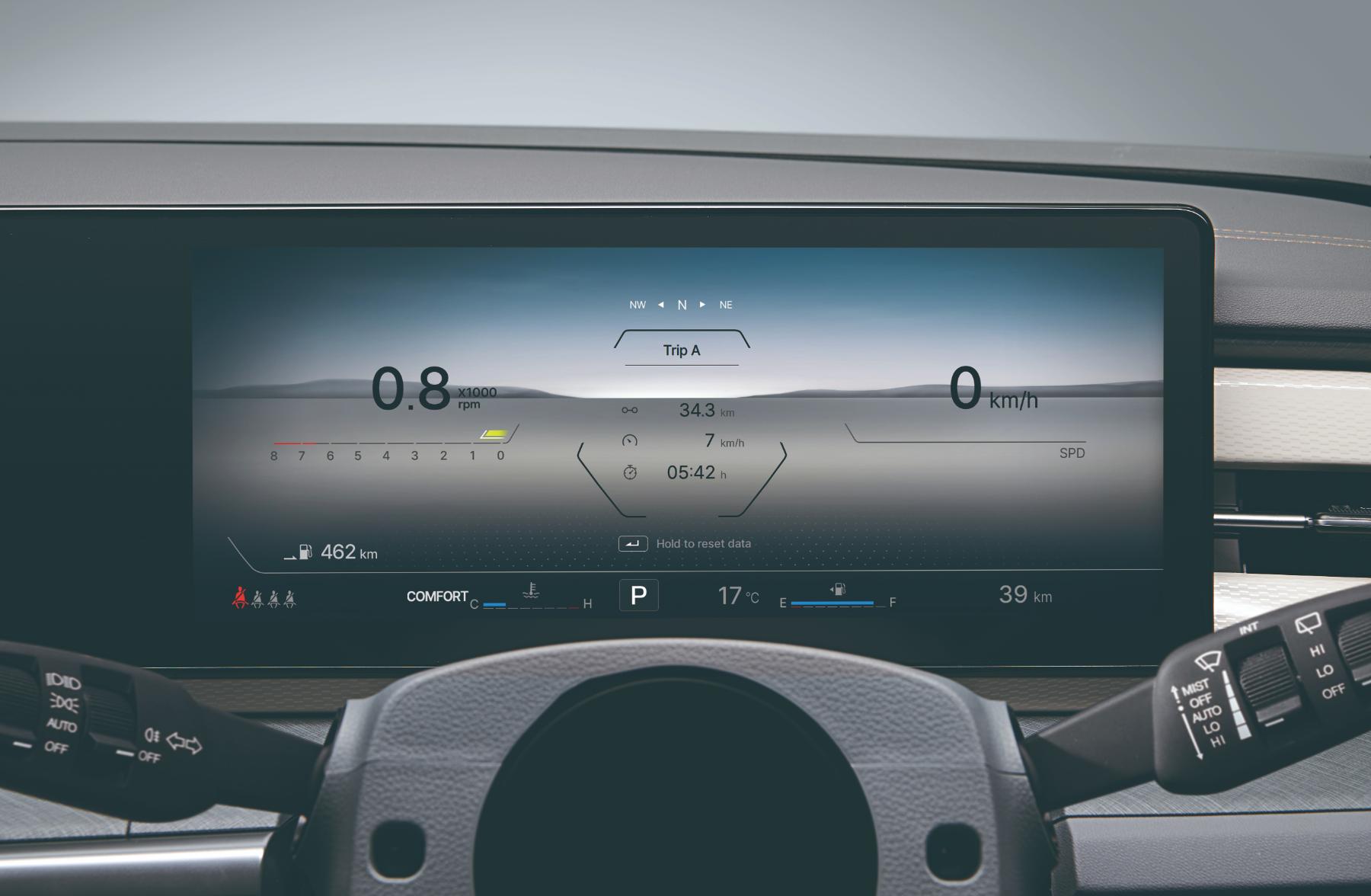 Positioned behind its expansive, sleek and modern dashboard, you’ll experience a heightened sense of spaciousness and an unobstructed vista of the road ahead. Whether navigating city streets or embarking on a journey to the mountains, savour the panoramic scenery unfolding before you and the anticipation of what lies beyond each curve. Integrated seamlessly into the harmonious and ergonomic interior design, Torres maximizes user convenience with intuitive and easy-to-use information displayed on two separate 12.3-inch screens, minimizing physical controls.